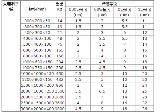 大理石平板規(guī)格參數(shù)表格: