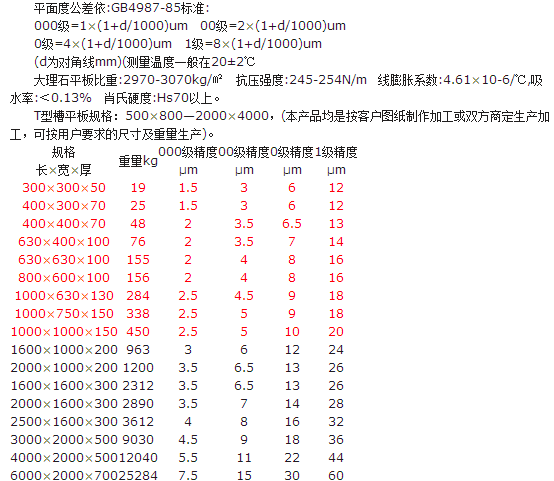 大理石T型槽平板精度:按國家標(biāo)準(zhǔn)計量檢定規(guī)程執(zhí)行,分別為0、一、二、三四個等級。